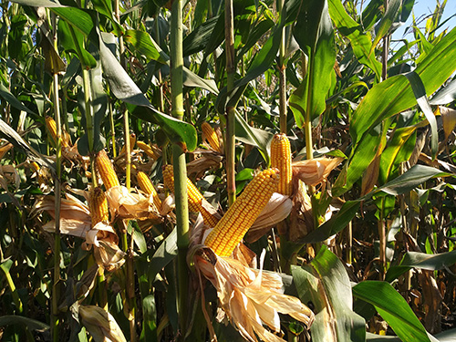 普通機(jī)收玉米品種。在適應(yīng)區(qū)出苗至成熟生育日數(shù)為117天左右,需≥10℃活動(dòng)積溫2300℃左右。該品種幼苗期第一葉鞘紫色,葉片綠色,莖綠色。株高300厘米,穗位高113厘米,成株可見14片葉。果穗圓筒型,穗軸紅色,穗長(zhǎng)19.0厘米,穗粗4.8厘米,穗行數(shù)14~16行,籽粒偏馬齒型、黃色,百粒重37.7克。兩年品質(zhì)分析結(jié)果:容重758~788克/升,粗淀粉70.80%~73.53%,粗蛋白12.40%~12.97%,粗脂肪3.88%~4.49%。兩年抗病接種鑒定結(jié)果:感(7)大斑病,絲黑穗病發(fā)病率12.4%~16.7%,莖腐病發(fā)病率11.1%~16.9%。